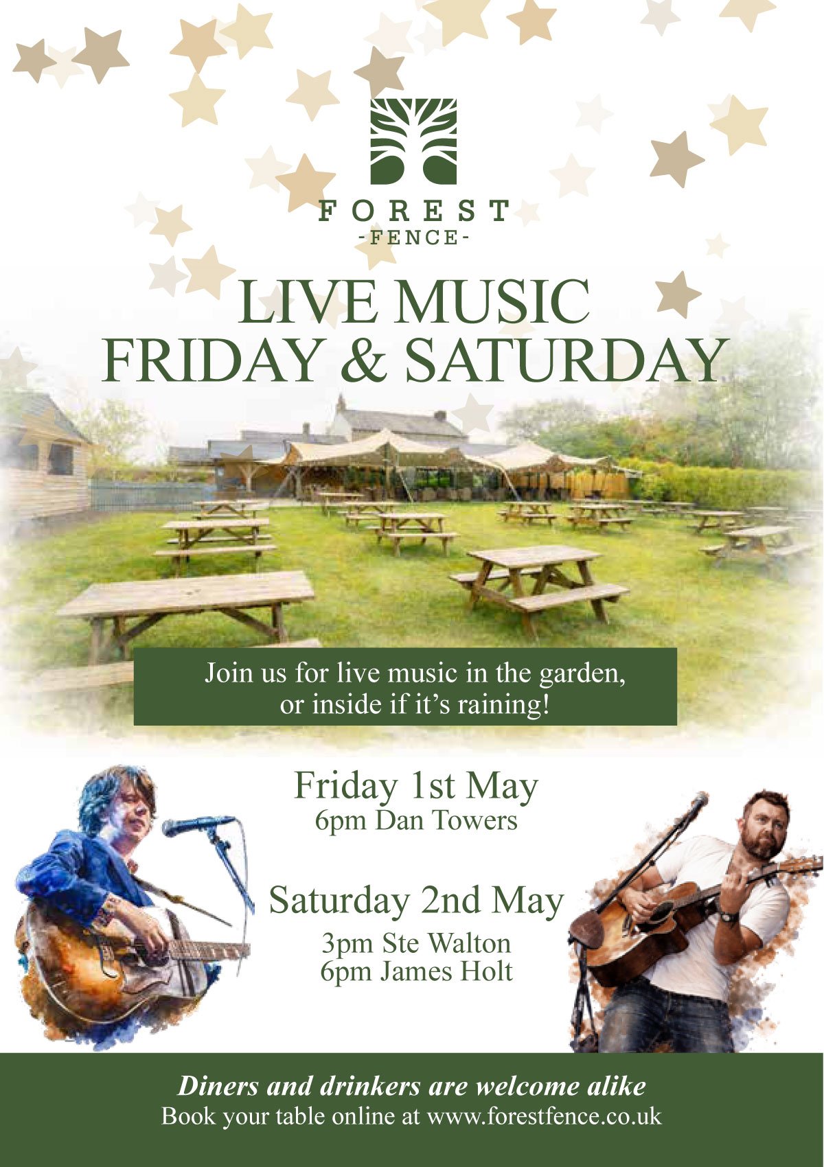 Back to All Events Live Music Friday & Saturday Friday 1 May 2026 18:00 Saturday 2 May 2026 21:00 The Forest Cuckstool Lane Fence, England, BB12 United Kingdom (map) Google Calendar ICS